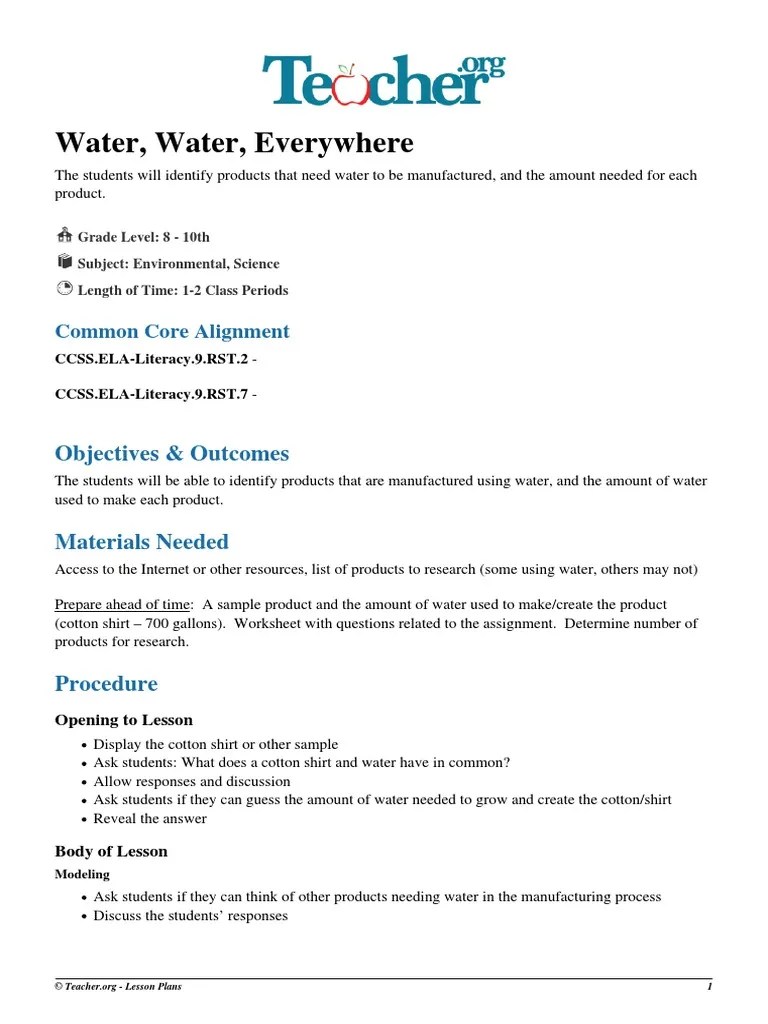 Environmental Science Lesson Plan : Lesson Plan Water Water Everywhere Pdf Lesson Plan Water :. Prepare for class by writing clear lesson plans that are easy to read. It starts with strategic planning. It's impossible to eliminate all business risk. Looking for a way to take your company in a new and profitable direction? Everyone hates it until you need it.